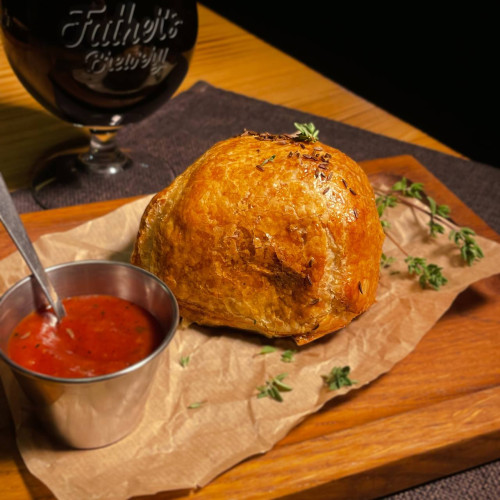 філе яловичини, печериці смажені, тісто листкове, бекон копчений, соус BBQ